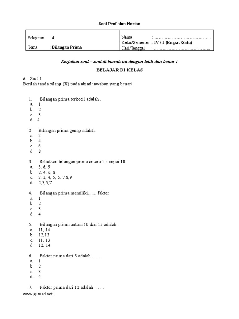 Latihan soal matematika kelas 4 sd kelipatan dan faktor 20 questions by larasatisaphira last updated.